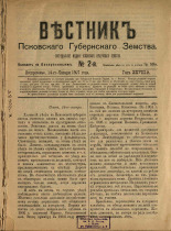 Вестник Псковского губернского земства. № 2 : 14 января / Издание Псковской губернской земской управы. - Псков : Типография Псковской губернской земской управы, 1907. - 16 с., с. прил. - . - Прил. 1901-1911: Журналы и постановления губерн. и уезд. зем. собраний. - Прил. к № 26. - Пер. утрачен. - В папке. - ФОНД РК: Краеведение (Кол.)