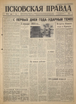 Псковская правда : Орган Псковского областного и городского комитетов Коммунистической партии Советского Союза, областного и городского Советов депутатов трудящихся . № 4 : 5 января / ред. И. В. Виноградов. - Псков, 1964. - 4 с. -