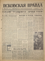 Псковская правда : Орган Псковского областного и городского комитетов Коммунистической партии Советского Союза, областного и городского Советов депутатов трудящихся . № 10 : 12 января / ред. И. В. Виноградов. - Псков, 1964. - 4 с. -