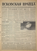Псковская правда : Орган Псковского областного и городского комитетов Коммунистической партии Советского Союза, областного и городского Советов депутатов трудящихся . № 3 : 6 января / ред. И. В. Виноградов. - Псков, 1965. - 4 с. -