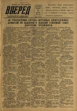 Вперед : Орган Павского райкома Коммунистической партии Советского Союза и районного Совета депутатов трудящихся, Псковской области. № 9 : 20 января., 1957. - 2 с. - . - Год издания Xi. Цена 10 коп.