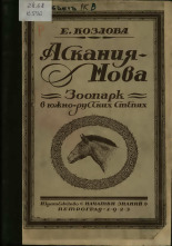 Аскания-Нова. Зоопарк в южнорусских степях. - Петроград : Начатки знаний, 1923. - [4],132, [8] с. : ил. - Сохран. с. 1 обл. изд. - Экз. деф.: нет с. 81-86. - На с. 135-136 книготорг. объявл. изд. Т-ва "Начатки знаний". - На тит. л. марка изд.: "НЗ". - ФОНД РК
